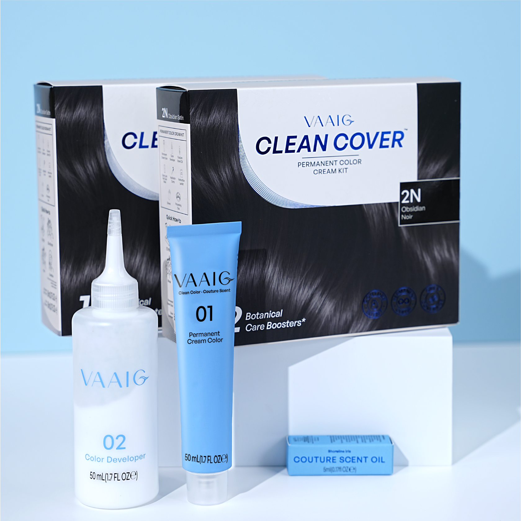 VAAIG Clean Cover 2N Obsidian Satin Black – Permanent Hair Color Cream Kit | Ammonia-Free, Botanical Hair Color | Permanent Hair Color | Strong Gray Coverage