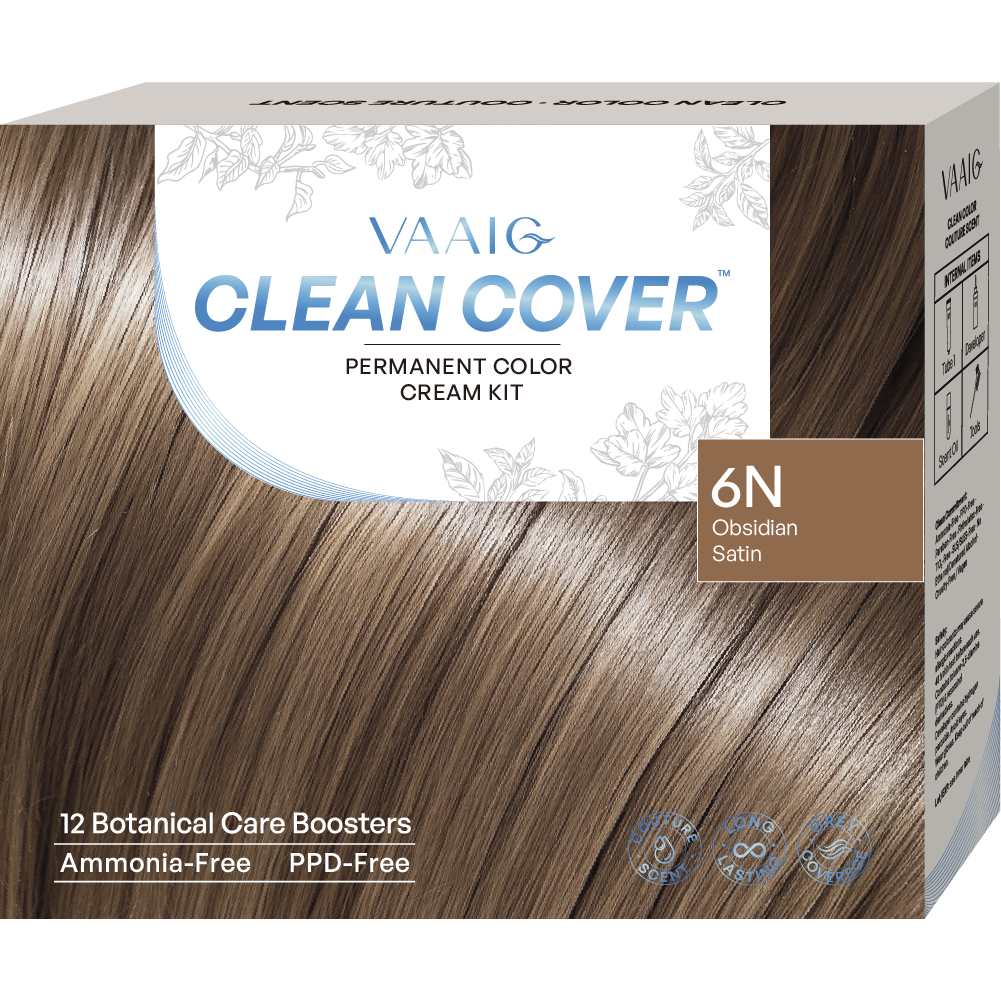 VAAIG Clean Cover 6N Light Brown | Ammonia-Free Botanical Hair Color | Permanent Hair Color | Fresh and Glossy
