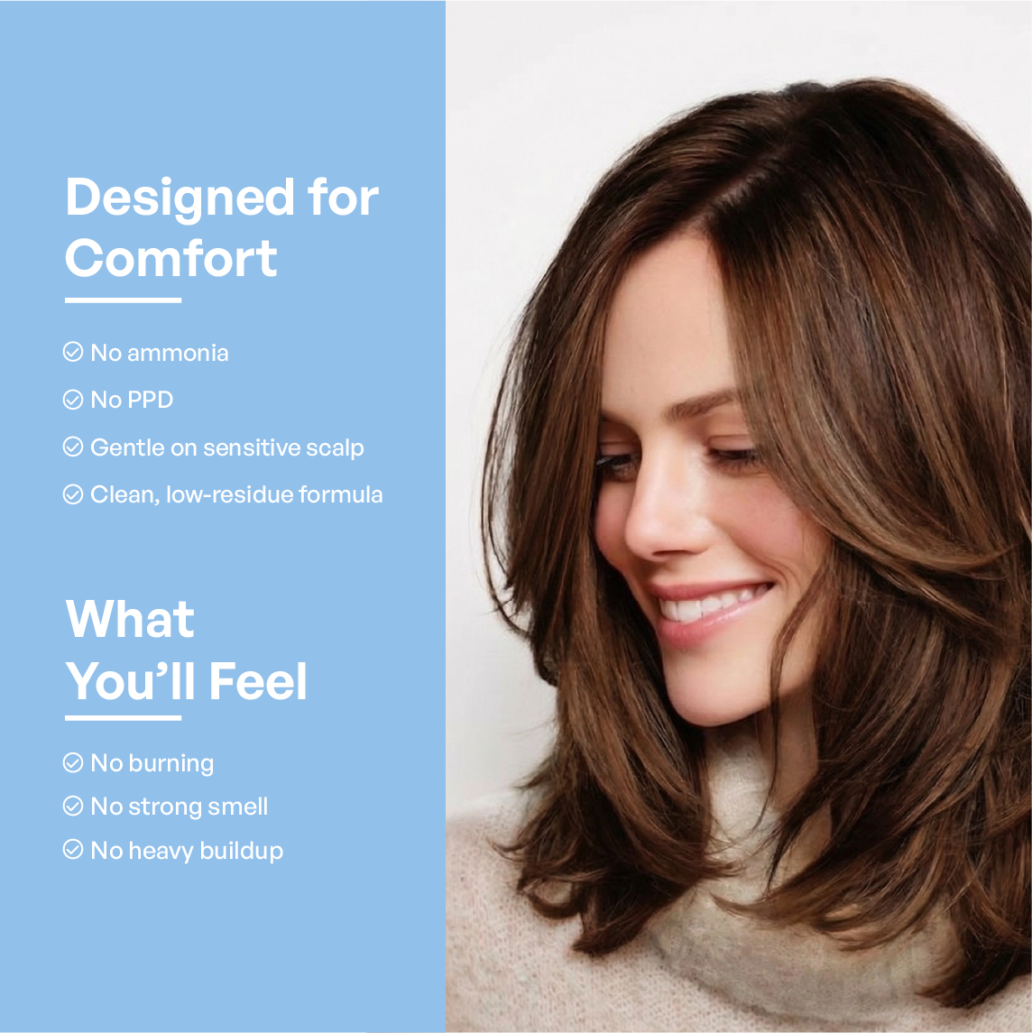 Soft, Balanced Mocha Brown Without Harsh Chemicals — smooth, professional-level results at home.